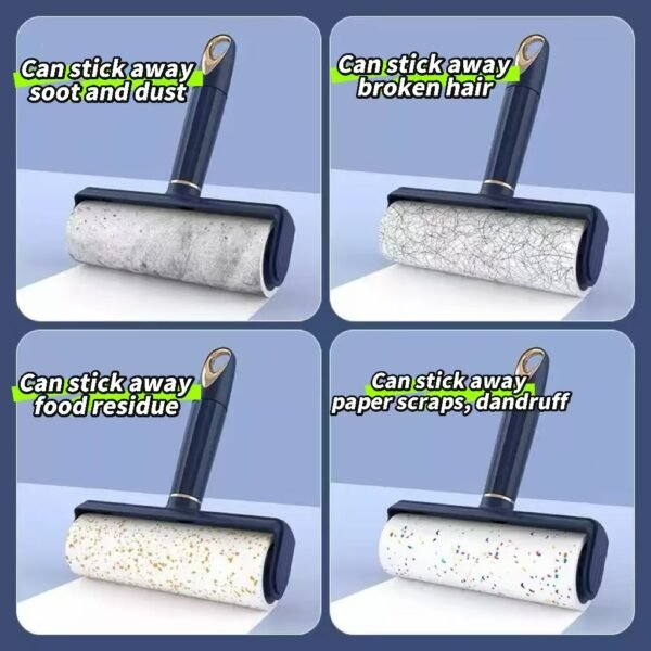 The Sticky Lint Remover is designed to effectively tackle soot, dust, broken hair, food residue, paper scraps, and dandruff. Upgraded to be dustproof, it ensures cleanliness and readiness for use at all times. Each roll contains 60 sheets, offering ample usage before a replacement is needed. The oblique tear design makes each sheet easy to remove, and the super sticky adhesive effortlessly picks up even the most stubborn debris. Its adhesive power is so strong that it can easily stick three bottles of coke.